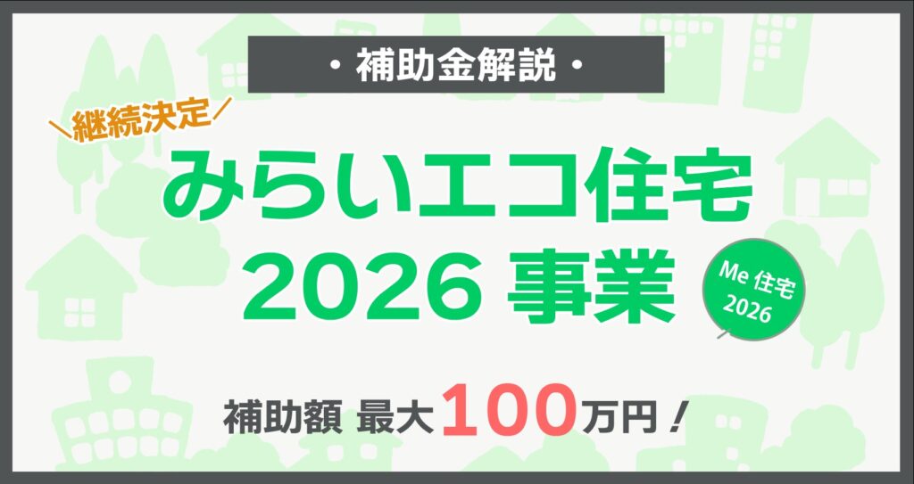 【継続決定!】住宅省エネキャンペーンが2026年度も継続へ 公開日:2025年12月2日/更新日:2025年12月19日 超大型補助金の「住宅省エネキャンペーン」が2026年度も継続されることが、11月28日の補正予算案で閣議決定されました。 公式HPの開設はこれからですが、現在判明している情報は以下の通りです。 対象期間 2025年11月28日以降にリフォーム工事着手したもの ●高断熱窓の設置 【先進的窓リノベ2026事業】 補助額最大100万円/戸 先進的窓リノベ2026事業|情報サイト(環境省) ●開口部、躯体等の省エネ改修工事 【みらいエコ住宅2026事業】※「子育てグリーン住宅支援事業」から名称変更 補助額最大100万円/戸 みらいエコ住宅2026事業|情報サイト(国土交通省) ●給湯器 高効率給湯器の設置:【給湯省エネ2026事業】 補助額最大17万円/台 賃貸住宅におけるエコジョーズ等取替:【賃貸集合給湯省エネ2026事業】 補助額最大10万円/台 補助金は期間内でも予算が無くなり次第終了になりますので、早めの相談が必須です。 また、毎年期間終了間際の駆け込み相談を多くいただきますが、期間内に工事完了が申請条件ですので、特に窓など納期のかかるものは前もってご相談ください。 投稿ナビゲーション 【第2期受付開始|12/1~】令和7年度信州健康ゼロエネ住宅助成金