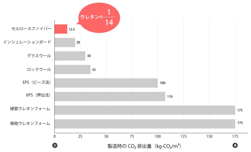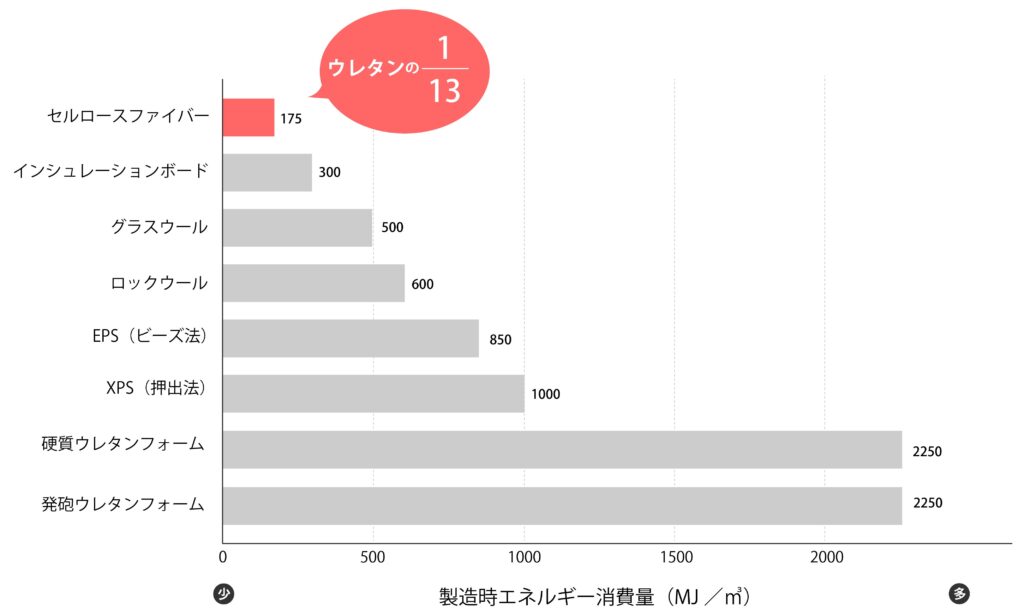 目次 Toggle セルロースファイバーとは?紙から生まれた自然由来の断熱材断熱材の中での位置づけセルロースファイバーの7つの性能1. 断熱性(Thermal Insulation)2. 調湿性(Moisture Control)3. 耐火性(Fire Resistance)4. 吸音性(Sound Absorption)5. 撥水性(Water Repellency)6. 防カビ性(Mold Resistance)7. 防虫性(Insect Resistance)歴史から見るセルロースファイバーアメリカでの誕生(1930年代)オイルショックで再注目(1970年代)ヨーロッパでの本格普及(1980〜1990年代)日本での導入と発展(1980年代〜)日本での普及要因の変遷環境への配慮|なぜ“エコ断熱材”なのか1. 古紙リサイクルで資源循環2. 省エネによるCO₂削減3. 健康配慮:室内空気質の観点健康寿命を延ばす住まいづくり ─ 断熱と調湿で“温度差リスク”と空気の悩みを同時に軽減施工方法と品質のポイント吹き込み工法の基本施工方法の種類品質を守るために大切なこと他断熱材との比較(メリット/デメリット)他断熱材との比較ポイント(一部抜粋)活用事例(新築/リフォーム/公共)新築住宅での活用リフォーム・リノベーションでの活用公共施設・教育施設での活用この断熱材が向いている人・住宅日本でセルロースファイバーを製造・供給している主な企業一覧なぜ今セルロースファイバーが選ばれているのか1. 多機能で暮らしを守る性能2. 環境性|資源循環と省エネに貢献3. 海外の実績と日本での成熟4. 住宅政策・社会的潮流との合致 セルロースファイバーとは? 紙から生まれた自然由来の断熱材 セルロースファイバーは、新聞紙や段ボールなどの古紙を再利用して作られる繊維状の断熱材です。「セルロース」は木材や紙の主成分である植物繊維の名称。つまり、木を原材料とした紙を粉砕・繊維化し、住宅の壁・天井・床下へ隙間なく吹き込むことで断熱層を形成します。 断熱材の中での位置づけ ひと言で断熱材と言っても大きく4つのカテゴリーに分類できます。その中でセルロースファイバーはどこに分類されるのでしょうか? カテゴリー 原 料 代表的な断熱材 特 徴 繊維系断熱材 グラスウール ロックウール ガラス(リサイクルガラス、石英砂) 鉱物(玄武岩・高炉スラグ) 繊維の隙間に空気を閉じ込めて断熱。安価で普及率が高いが、湿気や施工精度により性能低下のリスクがある。 発泡プラスチック系断熱材 EPS(ビーズ法ポリスチレンフォーム)、 XPS(押出法ポリスチレンフォーム)、 硬質ウレタンフォーム、フェノールフォーム 石油化学由来の樹脂(ポリスチレン、ポリウレタン、フェノール樹脂など) 発泡させた板状やスプレータイプ。高断熱・軽量だが、環境負荷や耐火性に課題。 自然素材系断熱材 セルロースファイバー ウッドファイバー 羊毛 古紙(セルロースファイバー) 木材チップ・繊維(ウッドファイバー) 羊毛 自然由来で環境負荷が低い。調湿性や健康面のメリット大。ただしコストや供給体制に課題がある。 特殊系断熱材 真空断熱材(VIP) エアロゲル断熱材 真空パネル(ガラス繊維芯材+多層フィルム) シリカ系ナノ多孔質(エアロゲル) 最高水準の断熱性能。省スペースでも有効。ただし高価で施工条件も限定的。冷蔵庫・特殊建築などで利用が多い。 数ある断熱材の中でもセルロースファイバーは、単に「熱を遮る」だけでなく、湿気を吸ったり放出したりする調湿性、音を吸収する吸音性、火や虫への強さなど、多機能を備えているのが大きな特徴です。環境へのやさしさと住み心地の良さを両立できる断熱材として、近年改めて注目されています。 それではセルロースファイバーの特徴について見ていきましょう。 セルロースファイバーの7つの性能 1. 断熱性(Thermal Insulation) セルロースファイバーの熱伝導率は約0.040W/m・Kで、グラスウールやロックウールと同等の水準です。つまり、カタログ上の「断熱性能の数値」だけで見れば、他の一般的な断熱材と大差はありません。 しかし、セルロースファイバーが注目されるのは「数字以上の実力」にあります。吹き込み充填によって隙間ができにくく、施工精度の影響を受けにくいため、実際の住宅での性能が安定しやすいのです。さらに繊維の中に空気をたっぷり抱え込むことで、冬は室内の暖かさを逃がさず、夏は外からの熱を遮り、快適な環境を保ちます。 加えて、セルロースファイバーは蓄熱性能が大きい点も特長です。熱をため込み、時間をかけてゆっくり放出する性質を持つため、外気温の変化が室内に伝わりにくくなります。夏の昼間に外の熱気を吸収し、夜になってから放出するため、日中の暑さをやわらげて夜の寝苦しさを抑える効果が期待できます。これは「数値としての断熱性能」には表れにくい、体感温度や暮らしの快適さに直結するポイントです。 【用語解説】 熱伝導率(ねつでんどうりつ):熱の伝わりやすさを表す指標。数値が小さいほど断熱性能が高い。 蓄熱性能(ちくねつせいのう):建材や断熱材がどれだけ熱をため込み、ゆっくりと放出できるかを表す性質のことです。 2. 調湿性(Moisture Control) セルロース繊維は湿気