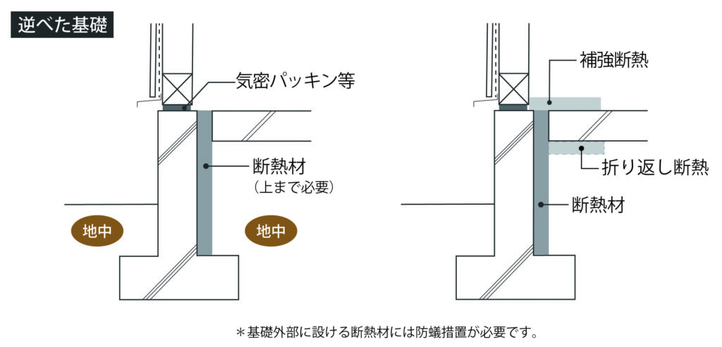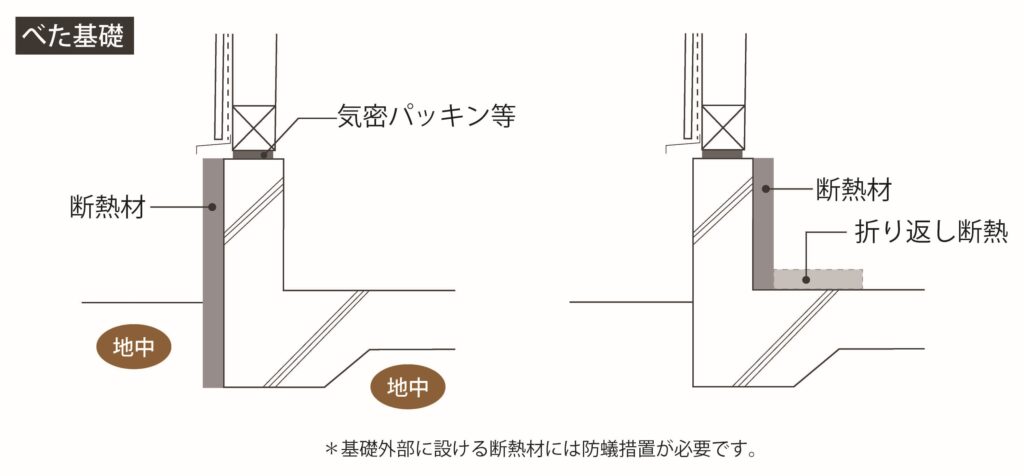 名前の通り、「べた基礎」の断熱位置を逆転させたような構造です。