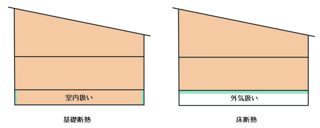 断熱ライン 床で区切る(床下は外気) 基礎で区切る(床下は室内扱い)